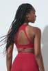 • Costas abertas com alças em tecido Dry Fit