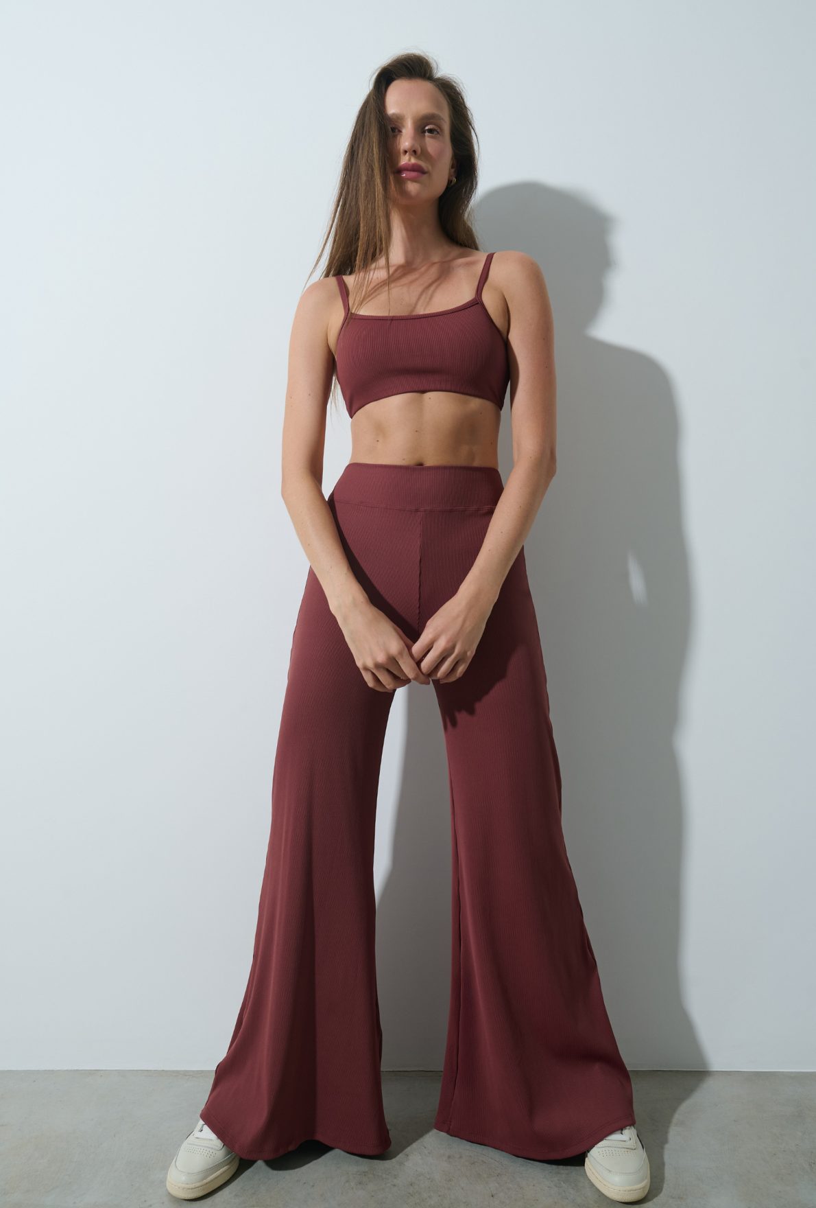 • Tecido texturizado (canelado em lycra), macio e elástico